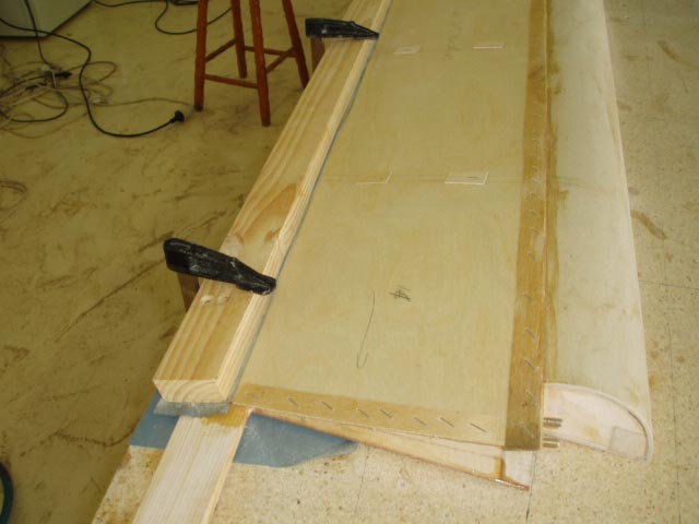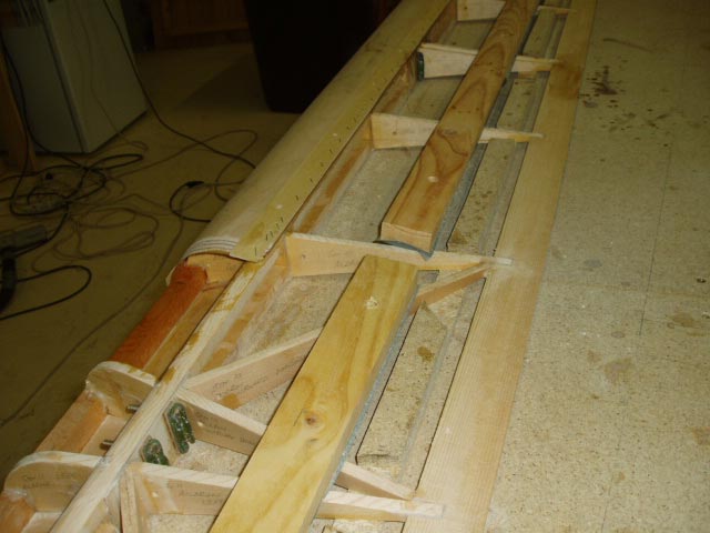 A packing strip is used to raise the trailing edge ribs for the proper twist. |